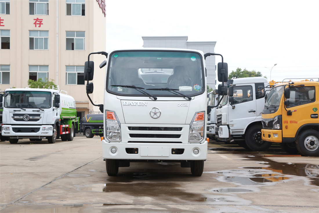 灑水車前裝有鴨形噴嘴或圓頭沖嘴,后面裝有圓柱開灑水噴嘴或蓮蓬頭噴嘴,后部有一工作平臺,裝配有水炮。后部還可裝8個噴嘴(選裝)。