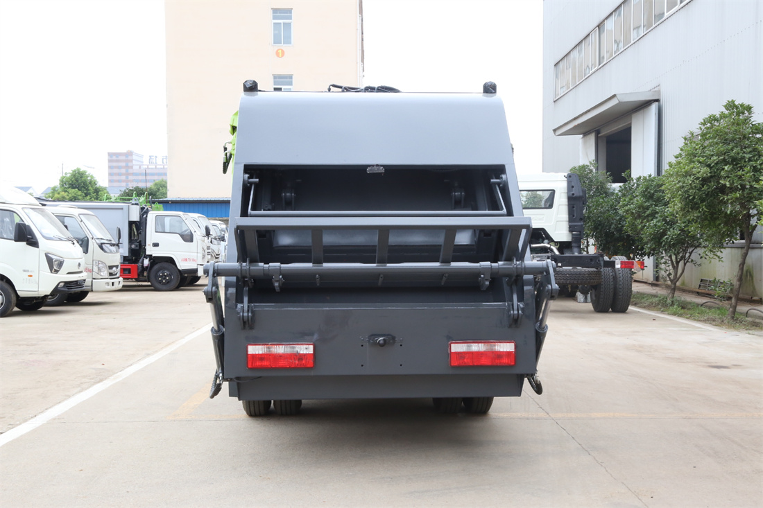 上裝配置:垃圾箱容積:6方,新款平面弧形廂體,廂體材料為武鋼優(yōu)質(zhì)碳鋼,PLC一鍵操作**,手電一體操作模式,兩側(cè)雙電控,帶駕駛室內(nèi)操作,底板支撐加強(qiáng),雙向壓縮,開(kāi)放式易清潔污水箱。壓縮式垃圾車(chē)采用機(jī)電液一體化技術(shù),借助機(jī)、電、液聯(lián)合自動(dòng)**系統(tǒng)、電腦**、手動(dòng)操作系統(tǒng),通過(guò)填裝器和推鏟等專(zhuān)用裝置,實(shí)現(xiàn)垃圾倒入、壓碎或壓扁、強(qiáng)力裝填,把垃圾擠入車(chē)廂并壓實(shí)和推卸,污水全部進(jìn)入污水廂,解決了垃圾運(yùn)輸過(guò)程中的二次污染的問(wèn)題。壓縮式垃圾車(chē)具有自動(dòng)反復(fù)壓縮以及蠕動(dòng)壓縮功能,壓縮比高、密封性好、裝載量大﹑操作方便、環(huán)保性好﹑整車(chē)?yán)霉β矢叩葍?yōu)點(diǎn)。作業(yè)自動(dòng)化,垃圾收集方式簡(jiǎn)便、高效。后翻轉(zhuǎn)機(jī)構(gòu)選裝:1、掛塑料桶式翻轉(zhuǎn)機(jī)構(gòu);2、掛鐵桶式翻轉(zhuǎn)機(jī)構(gòu);3、擺臂式翻轉(zhuǎn)機(jī)構(gòu); 4、簸箕斗式翻轉(zhuǎn)機(jī)構(gòu)。