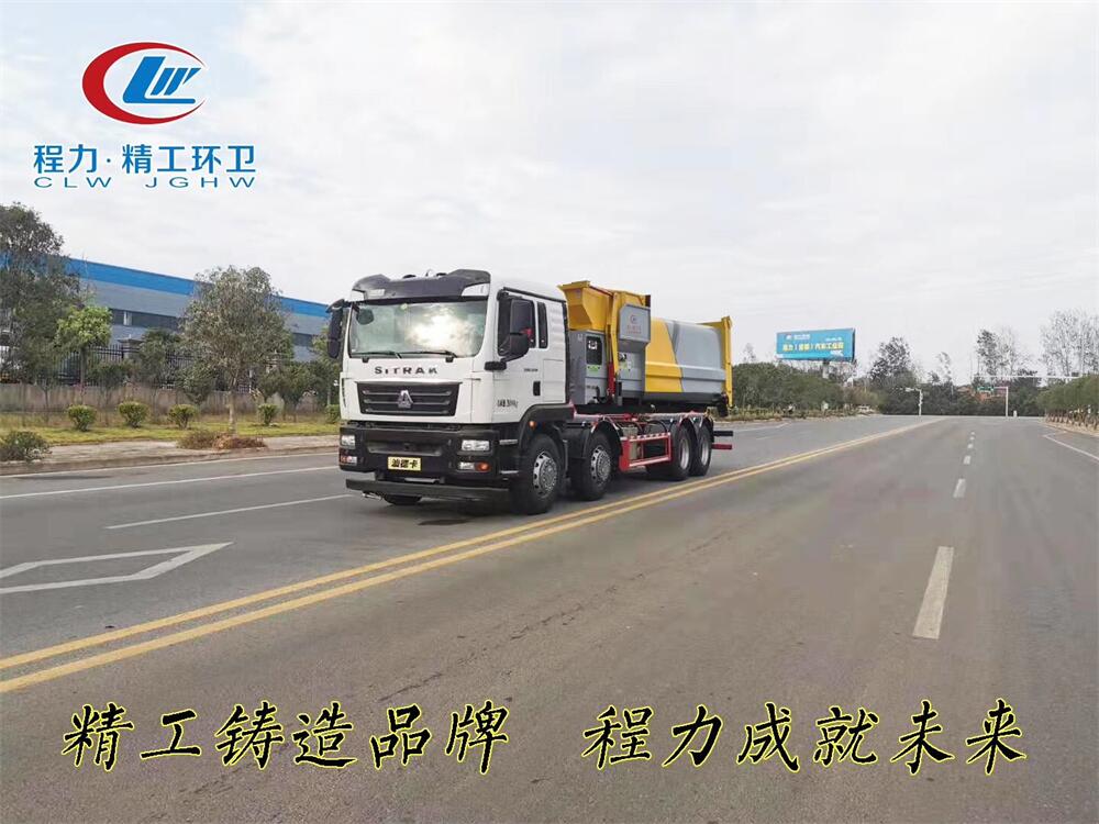 勾臂式垃圾車(車廂可卸式垃圾車)介紹: 車廂可卸式垃圾車又叫拉臂式垃圾車,是一種采用高新設(shè)計可伸縮的鉤臂,實現(xiàn)垃圾廂的二次吊裝,自吊上放下,可自行傾倒垃圾的環(huán)衛(wèi)設(shè)備。 拉臂式垃圾車結(jié)構(gòu)簡單,操作穩(wěn)定方便,裝卸效率高,機(jī)械化程度高,節(jié)省人力。鉤臂垃圾車一車可帶多個垃圾廂,在裝卸的運輸過程中可有效地避免二次污染。 拉臂垃圾車采用高新設(shè)計可擺動的鉤臂,垃圾箱由框架、開啟油缸、滑輪、后門和若干加強(qiáng)框架與鋼板焊接而成。調(diào)換貨廂快捷方便,貨廂上帶蓋(倒垃圾時可翻開),鉤臂垃圾車?yán)鴰w可選用碳鋼、不銹鋼材質(zhì)、內(nèi)部采取環(huán)氧樹脂防腐處理,改裝部分與原車底盤為可分離式,維修方便且保持了原車的機(jī)動性及行駛性能。