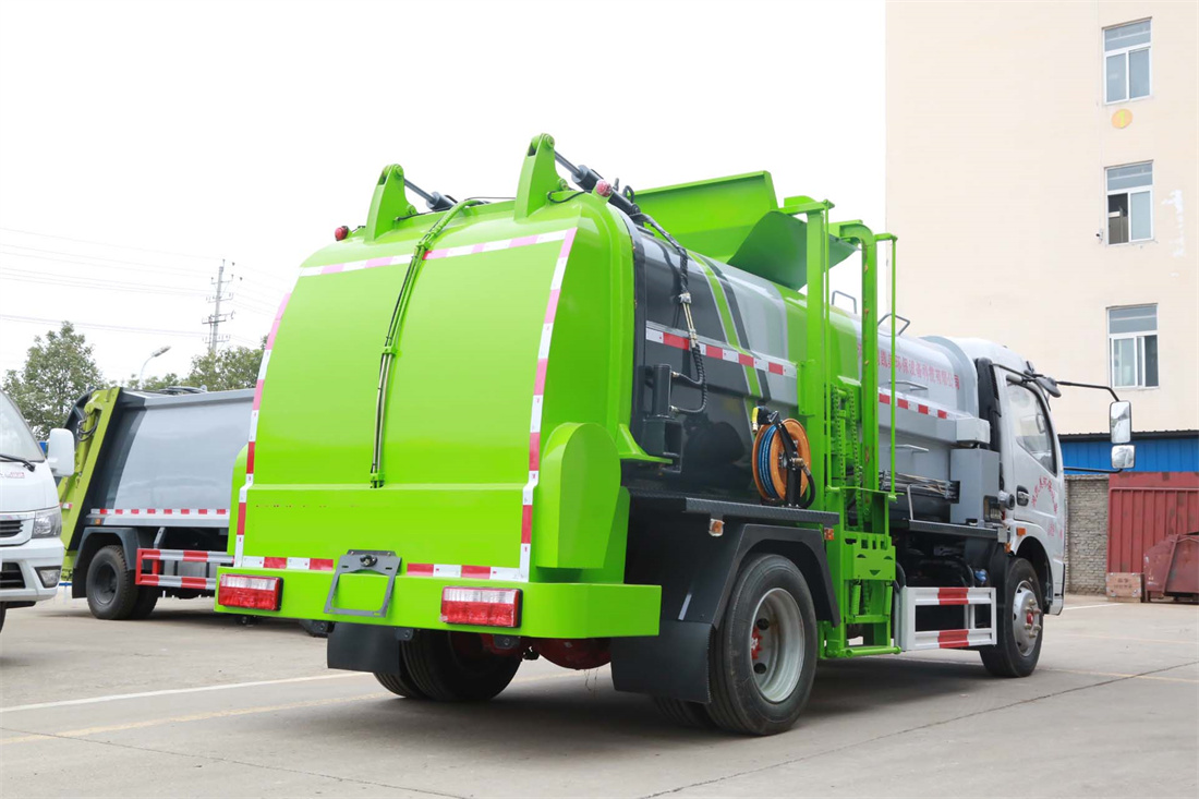 上裝配置:罐體容積8m3,配備120L/240L掛桶提升翻轉(zhuǎn)機(jī)構(gòu),液壓系統(tǒng),后蓋液壓鎖緊開(kāi)啟,罐體可以舉升自卸,尾部帶自流閥;用于運(yùn)輸液態(tài)垃圾,其特點(diǎn)操作簡(jiǎn)單,密封性好,無(wú)泄漏,無(wú)異味;可選裝固液分離功能,推板擠壓功能,常用于餐館的垃圾轉(zhuǎn)運(yùn)處理。