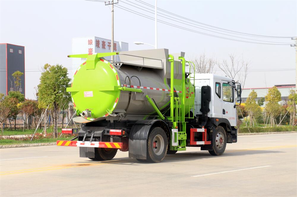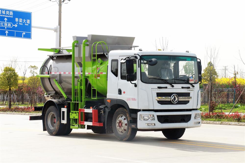 上裝配置:罐體容積10m3,配備120L/240L掛桶提升翻轉機構,液壓系統(tǒng),后蓋液壓鎖緊開啟,罐體可以舉升自卸,尾部帶自流閥;用于運輸液態(tài)垃圾,其特點操作簡單,密封性好,無泄漏,無異味;可選裝固液分離功能,推板擠壓功能,常用于餐館的垃圾轉運處理。