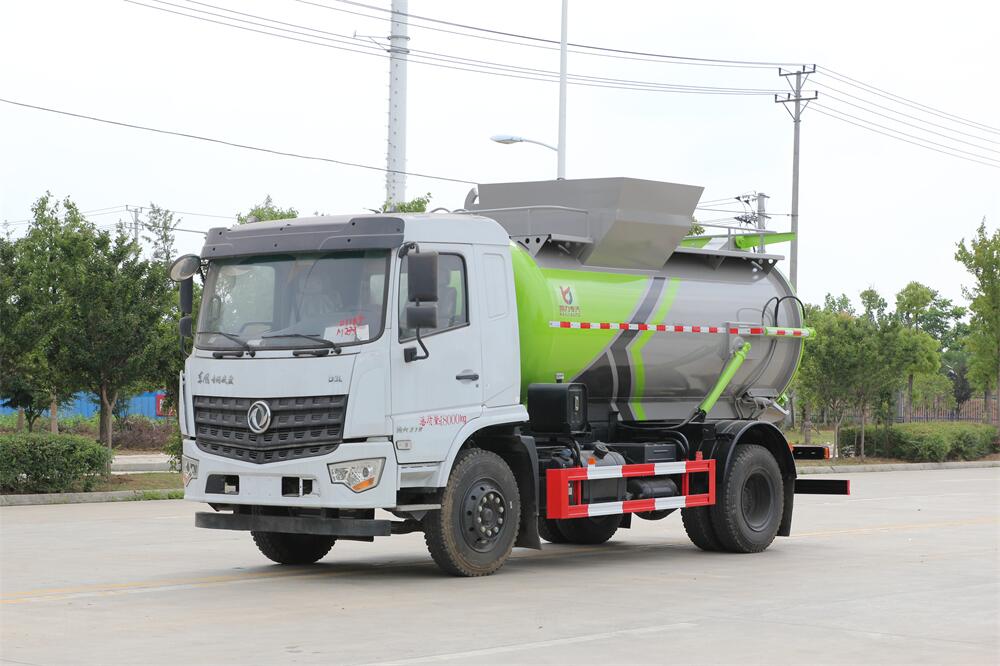 上裝配置:罐體容積10m3,配備120L/240L掛桶提升翻轉(zhuǎn)機(jī)構(gòu),液壓系統(tǒng),后蓋液壓鎖緊開(kāi)啟,罐體可以舉升自卸,尾部帶自流閥;用于運(yùn)輸液態(tài)垃圾,其特點(diǎn)操作簡(jiǎn)單,密封性好,無(wú)泄漏,無(wú)異味;可選裝固液分離功能,推板擠壓功能,常用于餐館的垃圾轉(zhuǎn)運(yùn)處理。