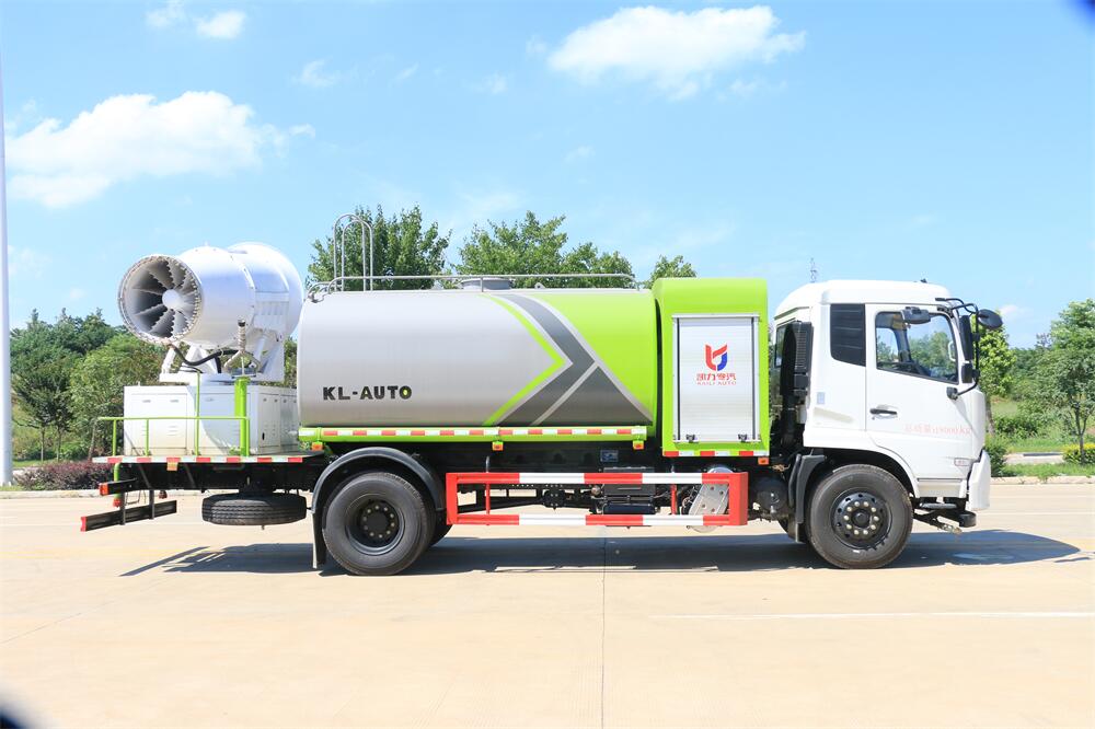 上裝配置:罐體容積為 12立方,選配風(fēng)送式霧炮機(jī)組射程30米、40米、50米、60米、80米、100米、120米霧炮,罐體鋼板為4mm碳鋼Q235材質(zhì),罐內(nèi)隔板具有防波作用,以減輕汽車行駛時(shí)罐體液體沖擊,罐體及整車外形尺寸按照公告。帶大功率專用灑水泵,泵可自吸自排,整車前沖、后灑、側(cè)噴、帶65消防接口,后平臺(tái)配CLW-50、CLW-60、CLW-80、CLW-100、CLW-120型風(fēng)送式霧炮機(jī)組;罐體前封頭配大功率柴油發(fā)電機(jī)組;前封頭帶水位計(jì),后平臺(tái)主管路帶1寸澆花接口,后爬梯。帶兩根輸水管及陰陽(yáng)端。罐體顏色:銀/灰/綠,罐體兩側(cè)噴“多功能抑塵車”字樣,貼反光標(biāo)示。