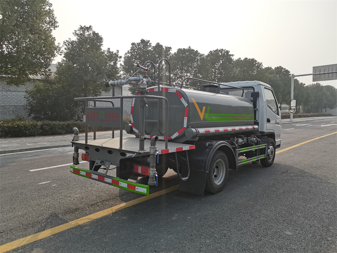 上裝配置:罐體容積 2立方,風送式霧炮機組30米,40米選擇,罐體采用國標Q235碳鋼材質(zhì),罐體厚度4MM,前后封頭5MM加厚型,罐體內(nèi)雙層隔板具有防波蕩作用,以減輕汽車行駛時罐內(nèi)液體沖擊;灑水車整車及外形尺寸嚴格按照**機動車公告制作而成;裝配大功率專用灑水泵,前沖、后灑、側(cè)噴、后平臺帶綠化灑水炮,灑水炮可全方位旋轉(zhuǎn),可連續(xù)調(diào)成直沖狀、大雨、小雨、毛毛雨;配消防接口,自流閥,濾網(wǎng),帶自吸自排功能。前封頭帶水位計,后平臺主管路帶1寸澆花接口,后爬梯,帶1個消防接頭,帶1個自流閥,1個過濾裝置,其余標配。
