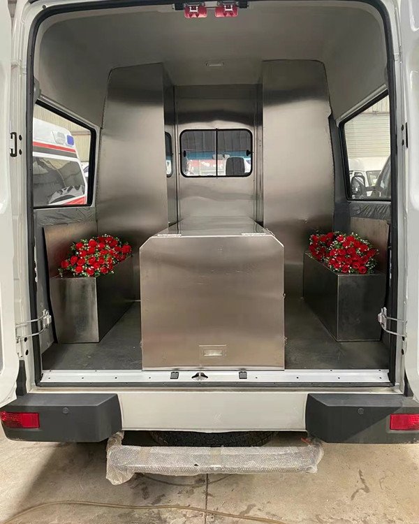 產(chǎn)品簡(jiǎn)介 | 1. 主要配置:空調(diào),暖風(fēng),前電動(dòng)車窗,安全氣囊,ABS,遙控鑰匙 2. 改裝部分采用304L不銹鋼制作,中間不銹鋼隔墻安裝拉窗,不銹鋼地板,不銹鋼常溫棺不銹鋼擔(dān)架,加兩側(cè)玻璃下不銹鋼裝飾 |